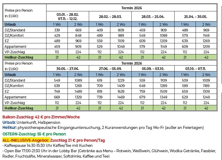 Kurtaxe/Ortsgebühr ist nicht im Preis inbegriffen und ist vor Ort zu zahlen.