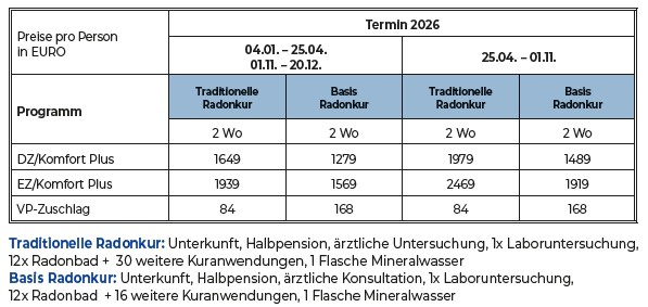 im Haus verabreicht (mit Hallenbad ca. 6 x 5 m, ca. 32 °C für Hausgäste 60 Minuten kostenlos). Die Mahlzeiten werden von den Gästen im hauseigenen Speisesaal eingenommen. Das Kurhotel ist auch für Rollstuhlfahrer geeignet. Serviceleistungen des Hauses sind: Sauna, Fitnessraum, Kneippgang, Wechselstube, Friseur, Kosmetik, Pediküre, Wäscheservice und bewachte Parkplätze (alles gegen Gebühr). Von der Dachterrasse des Hauses mit Liegestühlen im Sommer, hat man einen wunderbaren Blick auf Joachimsthal und seine Umgebung. Eine weitere Schwimmmöglichkeit (gegen ermäßigte Gebühr) besteht im neuen Aquacentrum "Agricola" (mit Hallenbad 25 x 6 m, Sauna, Salzgrotte), was etwa 5 Gehminuten von Kurhotel entfernt ist.