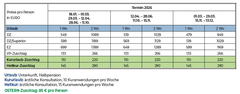Kurtaxe/Ortsgebühr ist nicht im Preis inbegriffen und ist vor Ort zu zahlen.