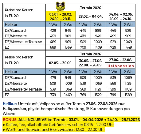 Kurtaxe/Ortsgebühr ist nicht im Preis inbegriffen und ist vor Ort zu zahlen.