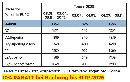 Kurtaxe/Ortsgebühr ist nicht im Preis inbegriffen und ist vor Ort zu zahlen.
