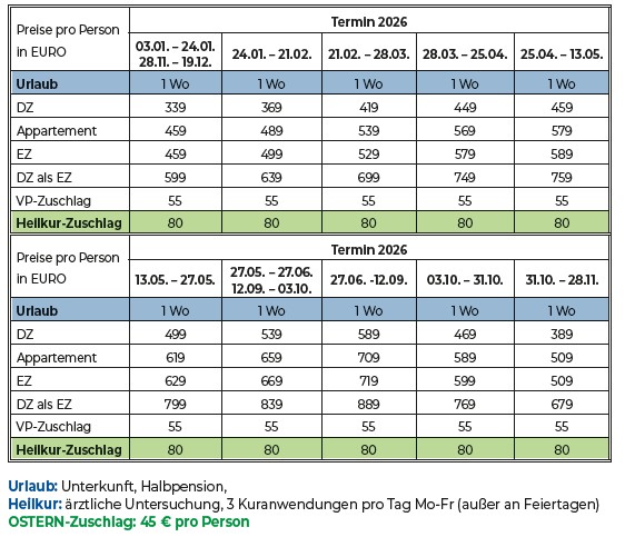 Kurtaxe/Ortsgebühr ist nicht im Preis inbegriffen und ist vor Ort zu zahlen.