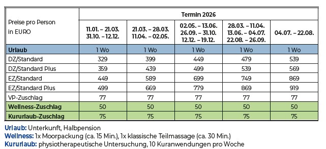 Kurtaxe/Ortsgebühr ist nicht im Preis inbegriffen und ist vor Ort zu zahlen.