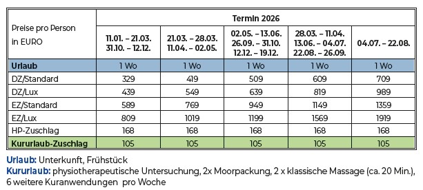 Kurtaxe/Ortsgebühr ist nicht im Preis inbegriffen und ist vor Ort zu zahlen.