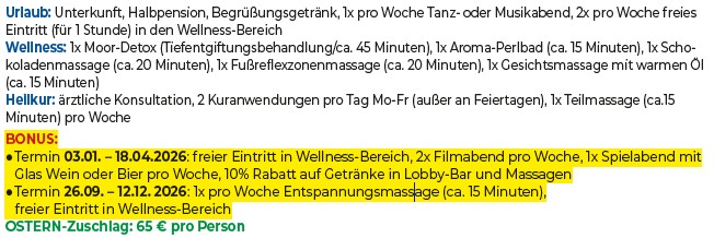 Kurtaxe/Ortsgebühr ist nicht im Preis inbegriffen und ist vor Ort zu zahlen.