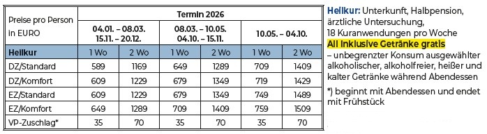 Kurtaxe/Ortsgebühr ist nicht im Preis inbegriffen und ist vor Ort zu zahlen.