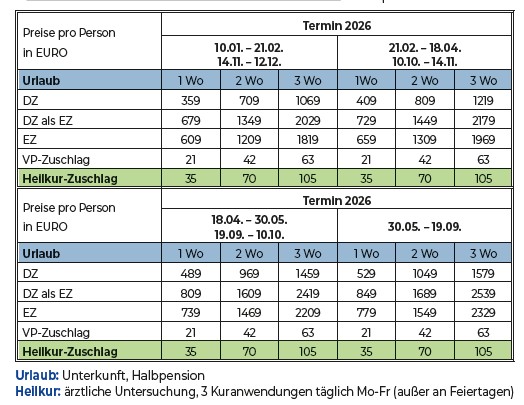 Kurtaxe/Ortsgebühr ist nicht im Preis inbegriffen und ist vor Ort zu zahlen.