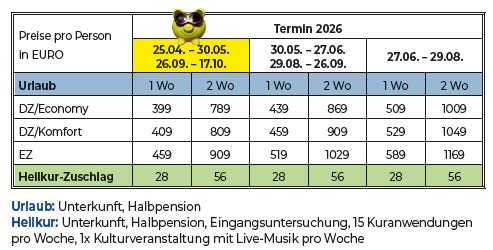 Kurtaxe/Ortsgebühr ist nicht im Preis inbegriffen und ist vor Ort zu zahlen.