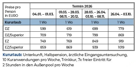 Kurtaxe/Ortsgebühr ist nicht im Preis inbegriffen und ist vor Ort zu zahlen.